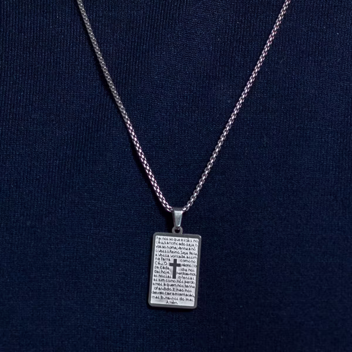 - Pingente: Oração Pai Nosso – símbolo de fé e proteção.