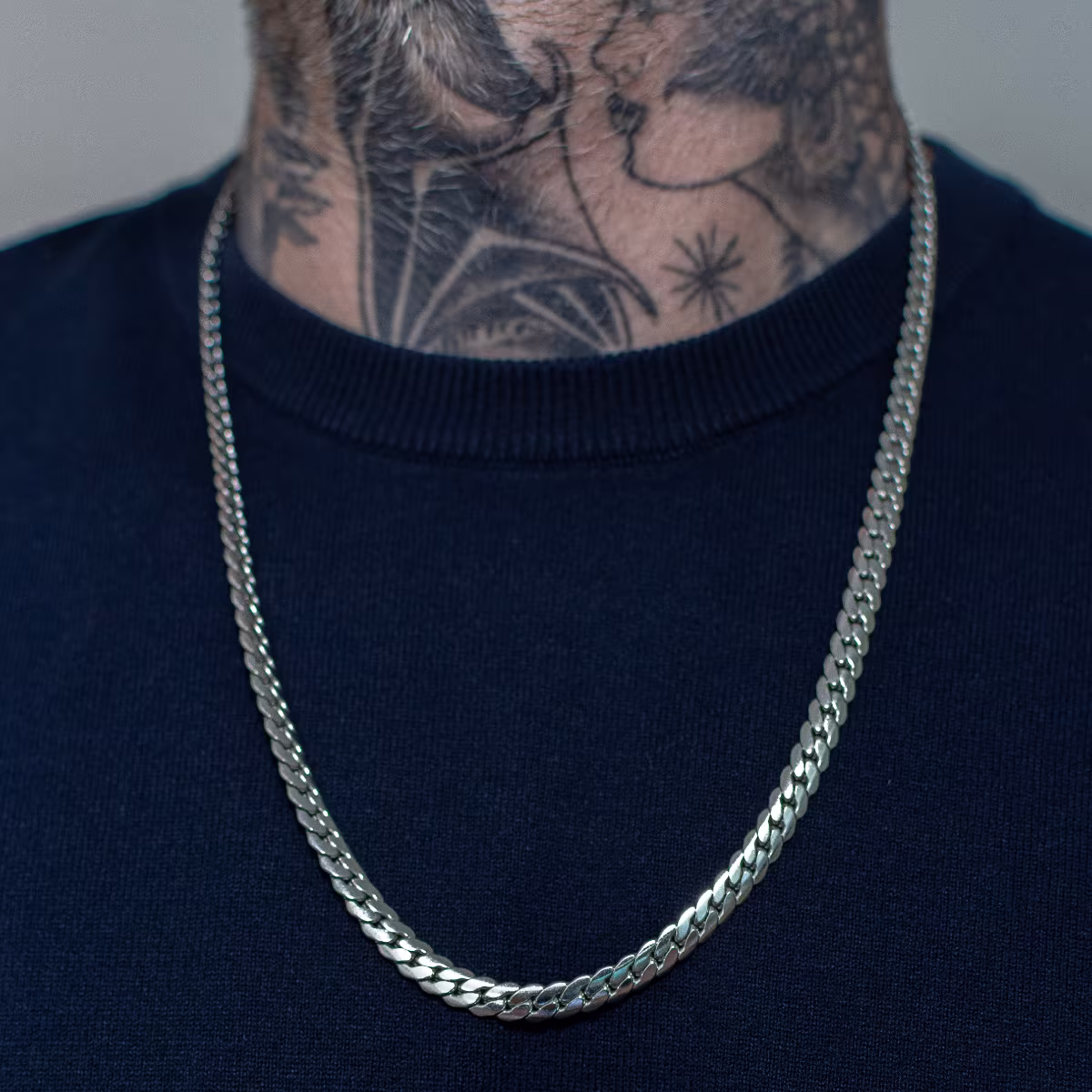 Com espessura de 6mm, a Corrente Bragi combina presença e refinamento na medida certa. Fabricada em aço inoxidável 316L, oferece brilho duradouro, resistência à oxidação e conforto para o uso diário. O fecho lagosta garante segurança e praticidade ao colocar e retirar a peça.