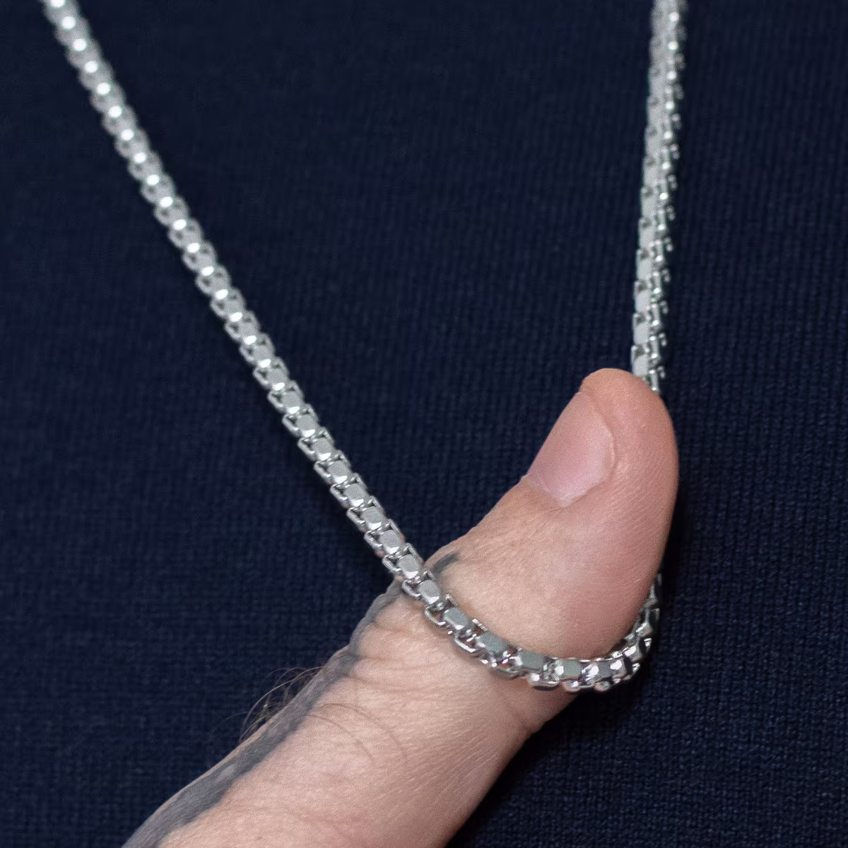 Com espessura de 4mm, a Corrente Heim apresenta um equilíbrio harmonioso entre leveza e presença. Produzida em aço inoxidável 316L, oferece resistência, brilho intenso e longa durabilidade. O fecho lagosta garante praticidade e segurança no uso diário.
