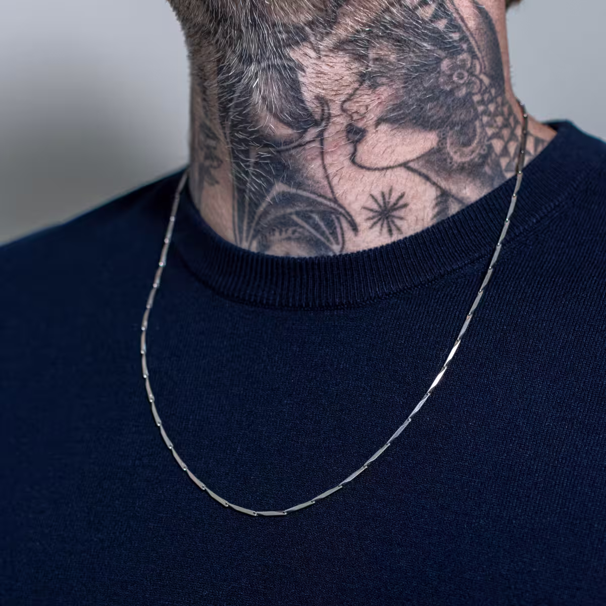 A Corrente Jarl é uma peça curinga que pode ser usada sozinha para um visual minimalista ou combinada com pingentes e outras correntes, criando composições cheias de estilo e personalidade.