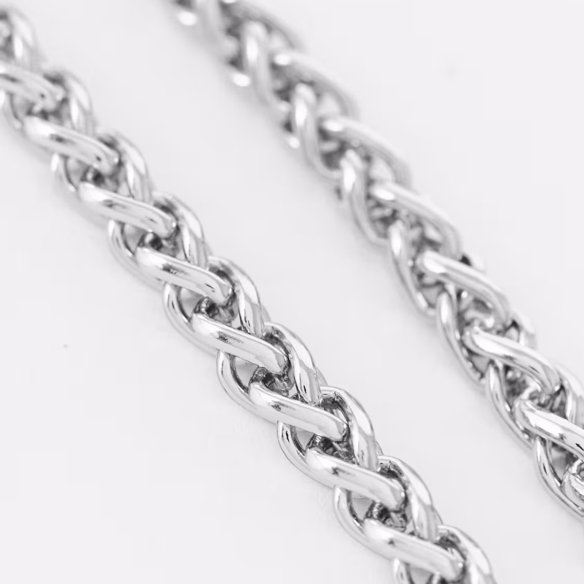 O elo trigo se destaca pelo entrelaçamento refinado, proporcionando um efeito visual sofisticado e detalhado. O tom prateado reforça a versatilidade da peça, combinando facilmente com diferentes estilos e ocasiões.