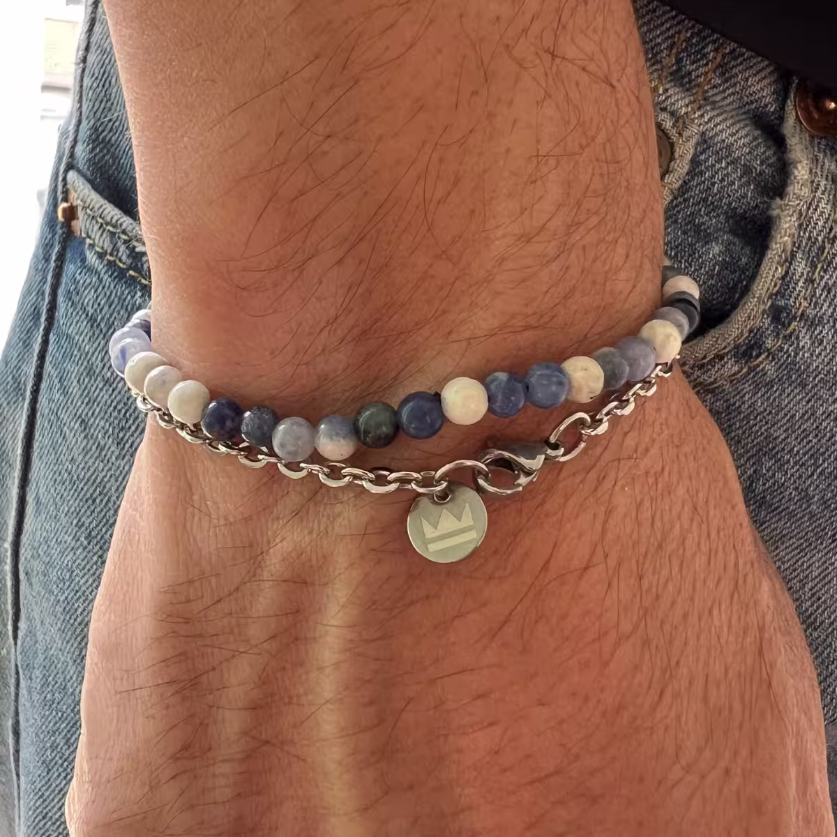 O Kit Bran une o poder das pedras naturais com a sofisticação do aço inoxidável 316L em um conjunto versátil e cheio de personalidade. Composto por uma pulseira em pedra Sodalita vulcânica de 4 mm e uma pulseira em elo português de 3 mm, é a escolha perfeita para homens que buscam equilíbrio entre estilo e significado.