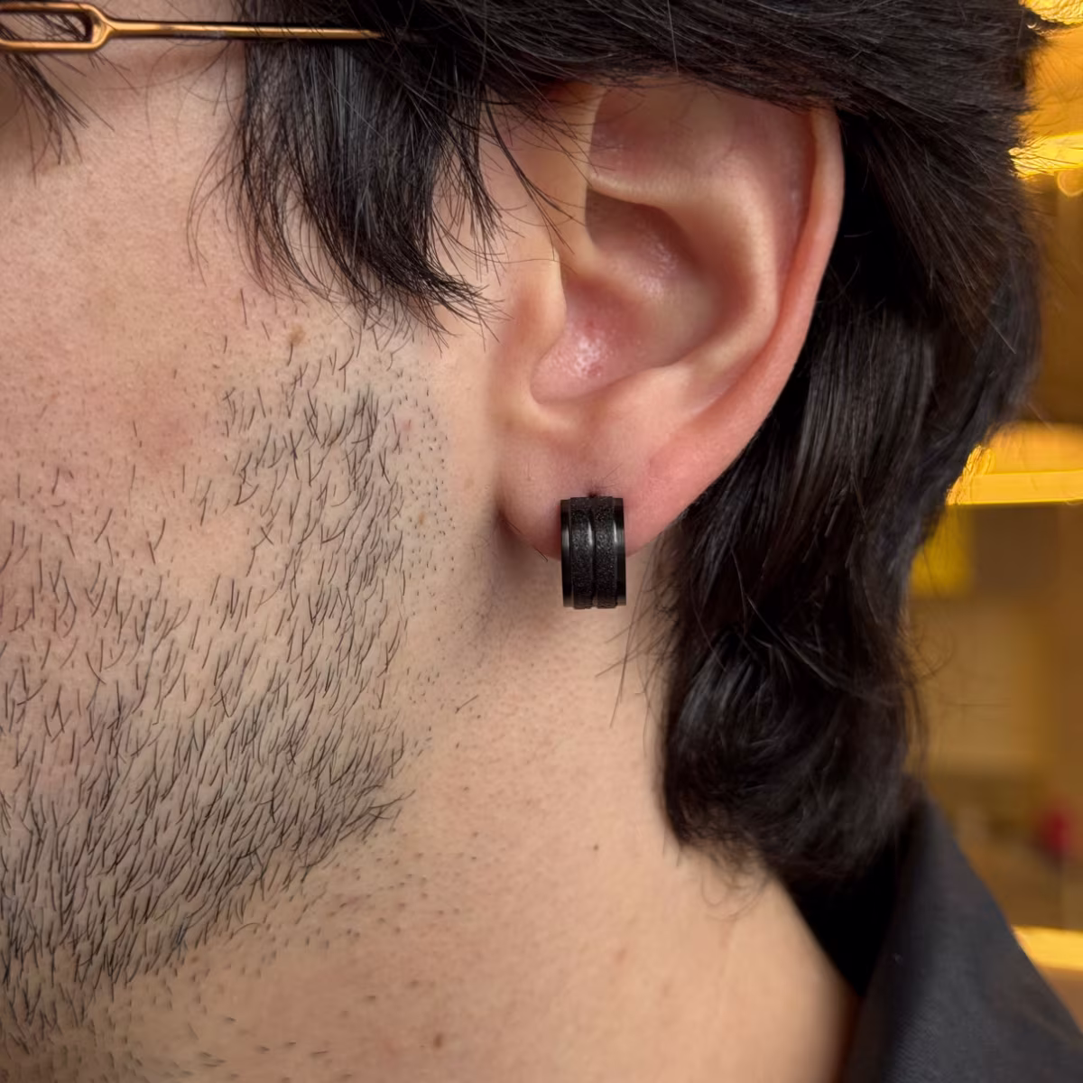 O Par de Brincos Jazz traz a combinação perfeita entre minimalismo e personalidade. Com acabamento preto e design limpo, essa peça é ideal para homens que preferem um visual discreto, mas com identidade. Feito em aço inoxidável 316L, oferece resistência e conforto para o uso diário.