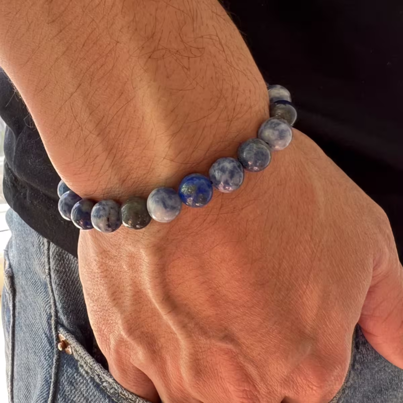 O Lápis-Lazúli é tradicionalmente associado à sabedoria e intuição, enquanto a Sodalita favorece a clareza mental e o equilíbrio interior. A combinação destas pedras cria uma pulseira única, perfeita para quem aprecia acessórios com estilo e propósito.